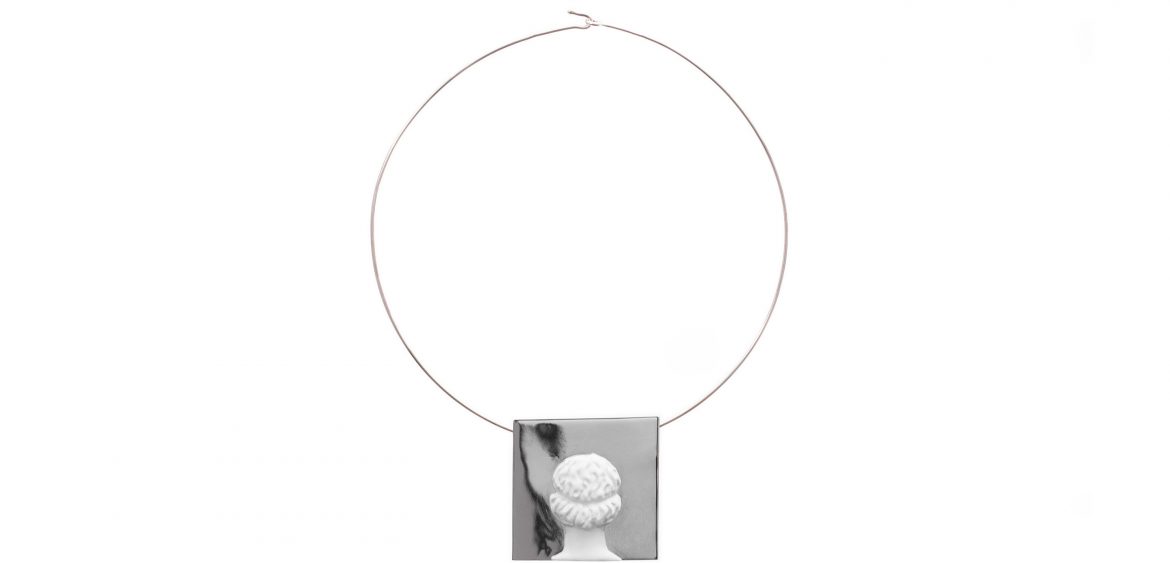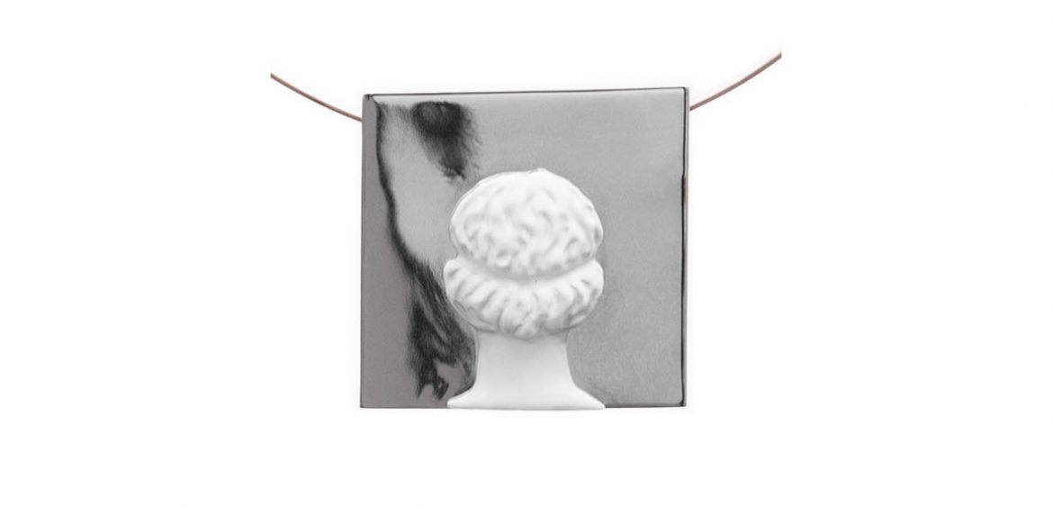 Giulio Paolini Atena Lemnia, 2016 18kt white gold bas-relief necklace with white gold torque 5 x 5 cm Edition of 8 Signed and numbered Make it Yours ♥ Giulio Paolini’s first wearable art project has been ideated around the idea of love. This gold bas-relief pendant is inspired by former installation of the artist ‘Sulla Soglia’. It represents a woman in Hellenistic style seen from behind, facing directly at the heart of the wearer. She is trying to trespass the threshold between the outer and the inner dimension, emphasizing the universality of the gaze as a bonding action This piece condenses the essence of the artist’s research that has always demonstrated interest in exploring the nature of images and the relationship between image and viewer. Through replication, fragmentation and citation Paolini often incorporates elements from the past into his artworks, thus establishing an artistic dialogue across times and styles.