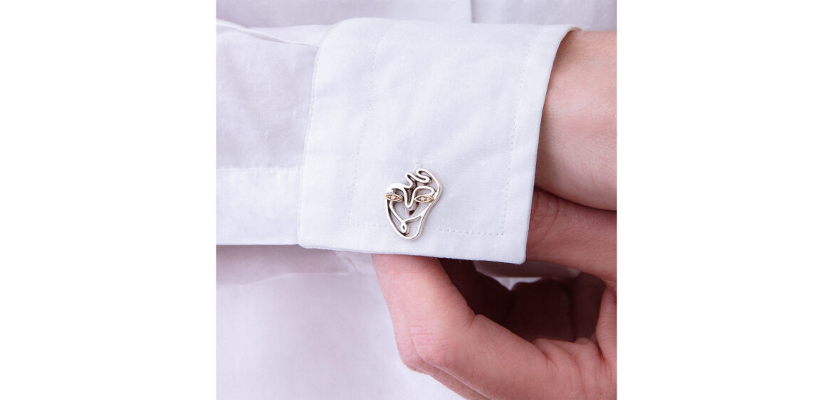 Paolo Canevari Lupe Romane, 2019 micro-mosaic and 9kt rose gold cufflinks 2.5 x 1.9 cm unique and signed With his Wearable Art projects, Canevari delves into his ideas of drawing, painting, or sculpting iconography and recognisable imagery into another dimension: into something we can wear. Lupe Romane incorporated the ancient Roman micro-mosaic techniques, and features the She-Wolf, a significant symbol of Rome, celebrated for her nurturing and protective powers. ‘I believe that the most important inspiration for an artist’s work is people’s way of thinking. Spirituality, as part of the human condition, brings with it a presence, a meaning, a symbol, a soul. I utilise icons in my work as a way of connecting with this fundamental truth. A tire, a skull or a bomb are recognisable images and part of our universal knowledge, just as much as a sacred image, or an image of a dog. What I do is use these icons in a new context, or structure, that places their meaning in jeopardy.’ – Paolo Canevari