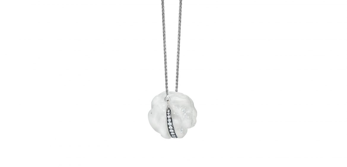 Noor Fares x Flavie Audi Superlunary Divina Cloud Pendant 18kt white gold, rock crystal, diamonds Unique The SUPERLUNARY collection is a demonstration of incredible craftsmanship of Flavie’s investigations of Cultural Geology, her inventive term to express the sciences linked to the human experiences and the celestial; and in tandem with Noor’s minimal aesthetic of wearable art that are fundamentally rooted in Vedic astrology, channelling that talismanic spirituality and protection through sacred symbolism and geometry. Each piece displays an incredible cosmic quality to them. The fluid geometry of the synthetic resin forms these cloudy crystals, moulded by a 3D printer, are adorned with artificial and natural precious stones, each stone needing the highest level of craftsmanship in order to cleave and carve them. Evoking the talismanic nature of spirituality in combination with the human processes, these pieces embody a vivacious energy, they evoke that artificial and natural ambiguity that is perceived through digital screens, and the cosmos in the sky, where the human touch meets both worlds. Each and every piece of the collection manages to glow upon the human skin when worn in such vastly unique and beautiful ways. The materials of the resin and the gemstones create that […]