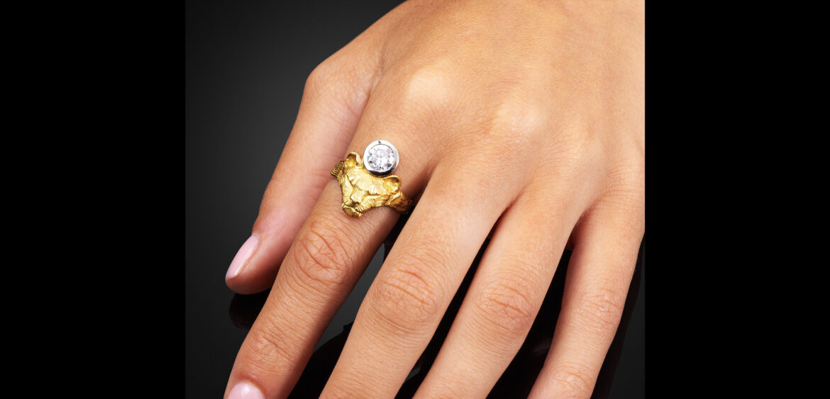 Massimo Izzo Rock Dream Collection 18kt yellow gold and black 925% silver and brilliant cut ring ct.0,28 Unique