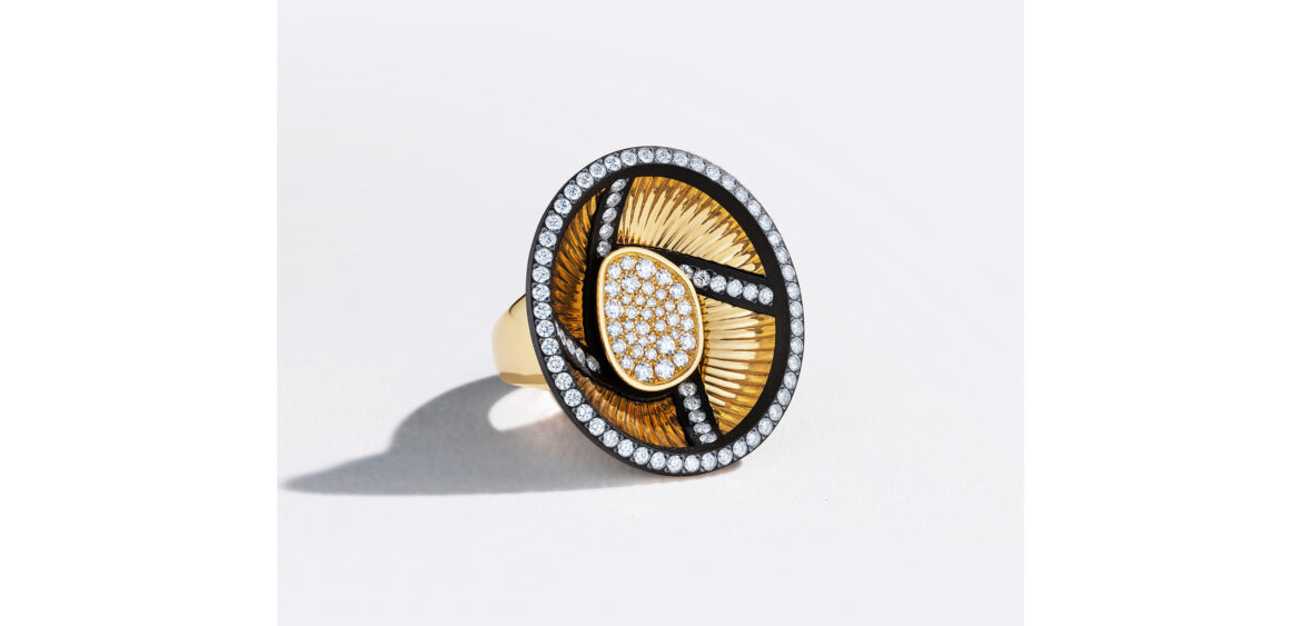 Satta Matturi Calabash Cocktail Ring 18kt yellow gold, enamel, titanium, diamonds ring Diamond Weight: 1.30 ct Unique and Signed Inspired by the calabash — a curved shell from the bottle gourd plant widely used in West Africa — Satta Matturi transforms this cultural symbol into fine jewellery. The series reimagines the calabash form through gold, titanium, and diamonds, celebrating heritage with contemporary design.
