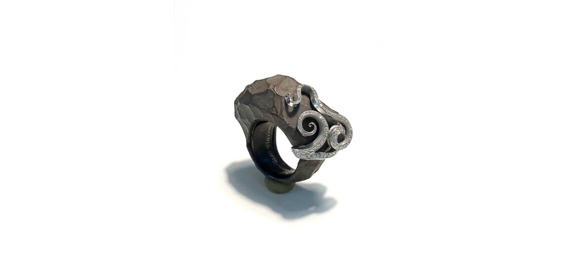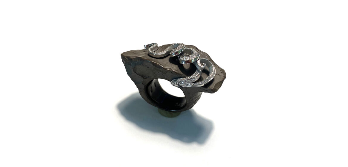 Massimo Izzo Rock Dream Collection ring 18kt white gold and black 925% silver and brilliant cut diamonds ct.0,35 F VS Unique