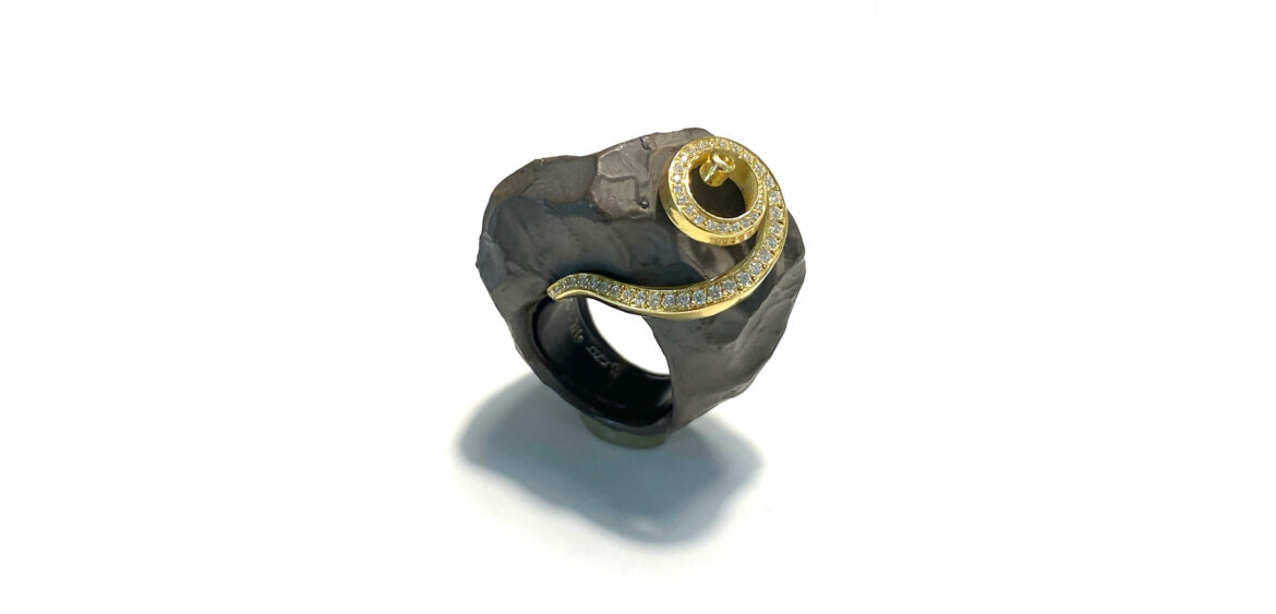 Massimo Izzo Rock Dream Collection 18kt yellow gold and black 925% silver and brilliant cut ring ct.0,26 Unique