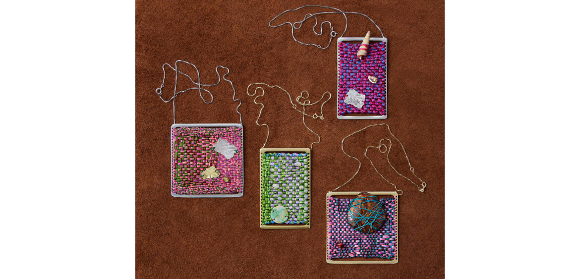 Cosmic Jewellery draws inspiration from two central forms in Hicks’ practice: the sculptural Boules and the intimate Minimes. The Minimes, small experimental studies created on a portable loom, function as personal sketchbooks through which the artist explores colour, texture, and structure.
