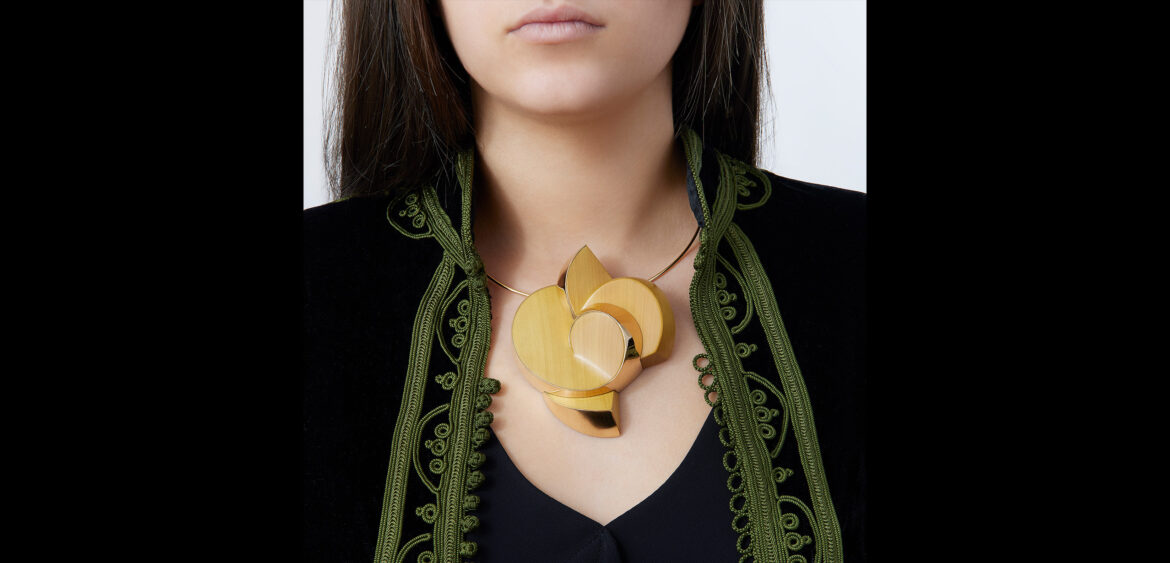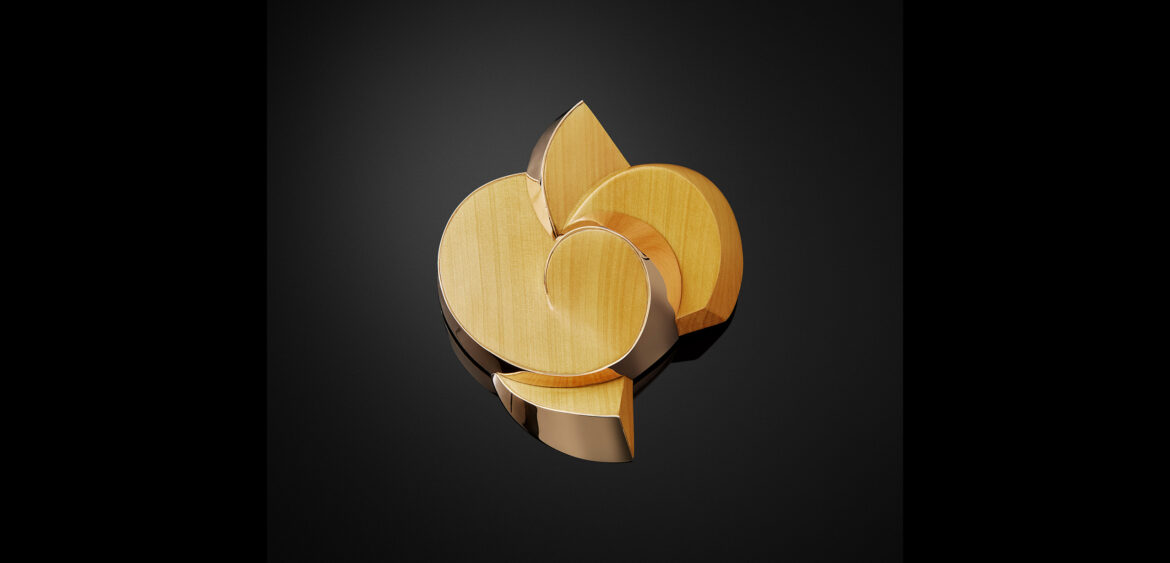 Pau Amarelo wood from Brazil and yellow gold brooch and pendant