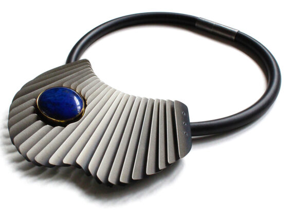 John’s fascination with fish and their movement is captured here in a series of necklaces, shaped and articulated like the fin of a ray.
