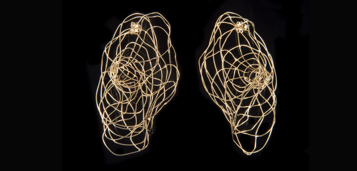For her wearable art pieces, Sissi interlaces the symbolism of the bird’s nest with the anatomy of the human body. The artist’s creations are hand-made and embellished, yet delicate like her sculptures. Carefully interwoven and welded with gold and silver threads, decorated with precious gemstones, Sissi’s contemplative process re-imagines a sculptural piece of art to work in tandem with the single wearer.