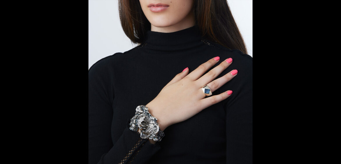 Industrial blue topaz and silver ring