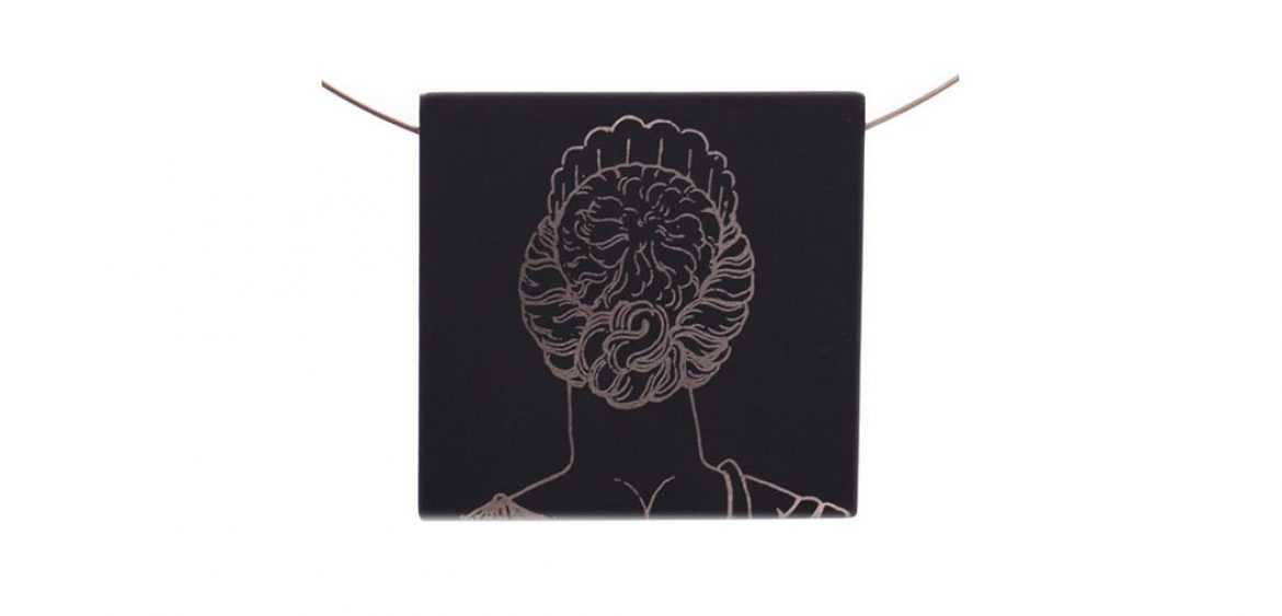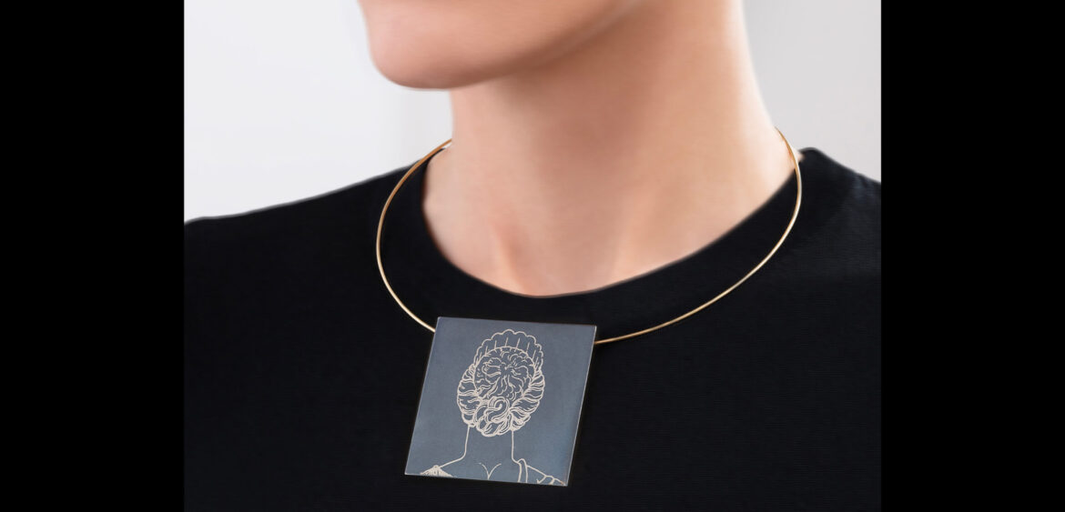 Giulio Paolini’s first wearable art project has been ideated around the idea of love. This silver engraved pendant is inspired by former installation of the artist ‘Amore e Psiche’. It represents a woman in Hellenistic style seen from behind, facing directly at the heart of the wearer. She is trying to trespass the threshold between the outer and the inner dimension, emphasizing the universality of the gaze as a bonding action