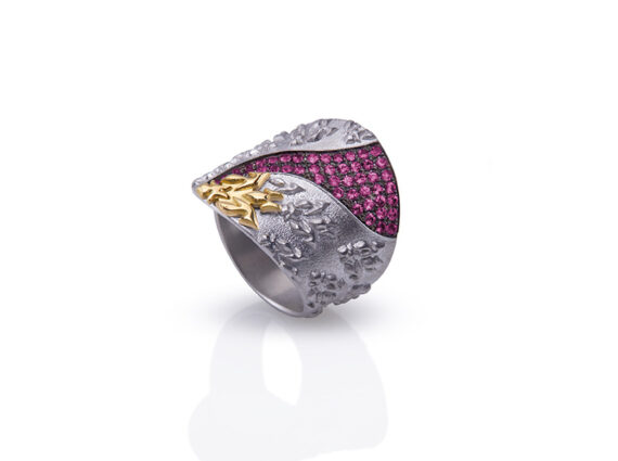 “As you wear these pieces, you allow yourself to be transported to a place where dreams intertwine with reality, where the delicate patterns of foliage and the gentle whispers of flowers harmonise in a symphony of serene elegance. Feel the soft caress of petals against your skin, as if nature herself is gently embracing your hand, whispering ancient secrets and stories only the garden’s inhabitants have heard”. As you embark on this journey through my secret garden, I invite you to embrace the beauty that surrounds us, to reconnect with the world that often goes unnoticed in the haste of our everyday lives. This collection wants to serve as a reminder that within the humblest of places, lies an untold wealth of inspiration waiting to be explored— a world brimming with mysteries, secrets and untamed beauty”.