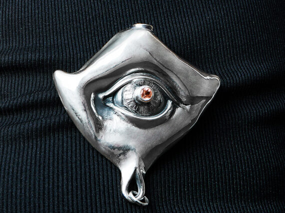 Silver, 18 kt gold, pink morganite brooch and pendant